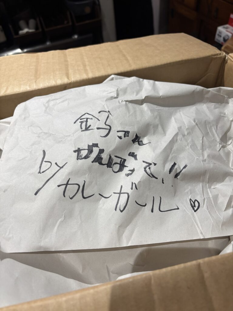 セントラルキッチンから届いた荷物の中からメッセージが😂